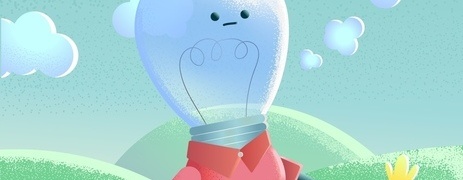 Иллюстрация с персонажем-лампочкой Матвея Харитонова